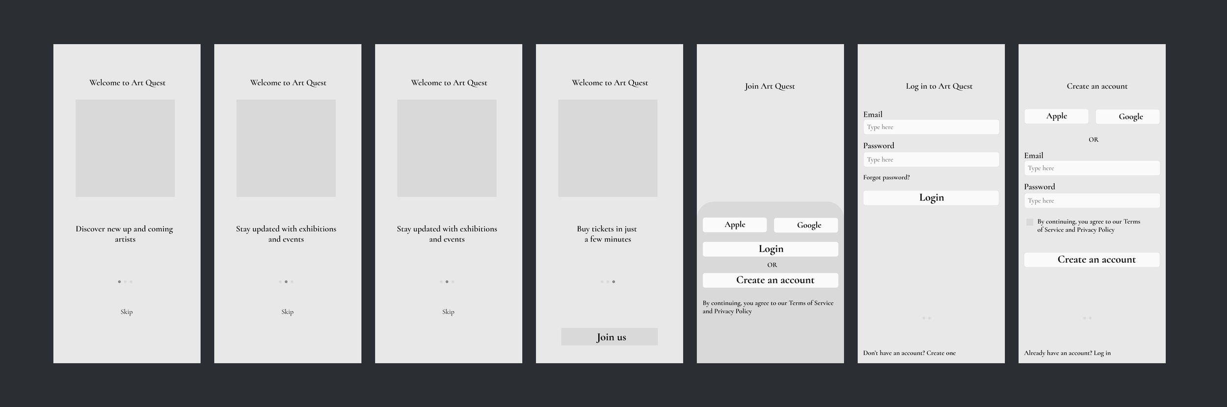 Based on the interviews and the competitive analysis, 4 primary personas were created and represent the audience “Art Quest” is hoping to reach