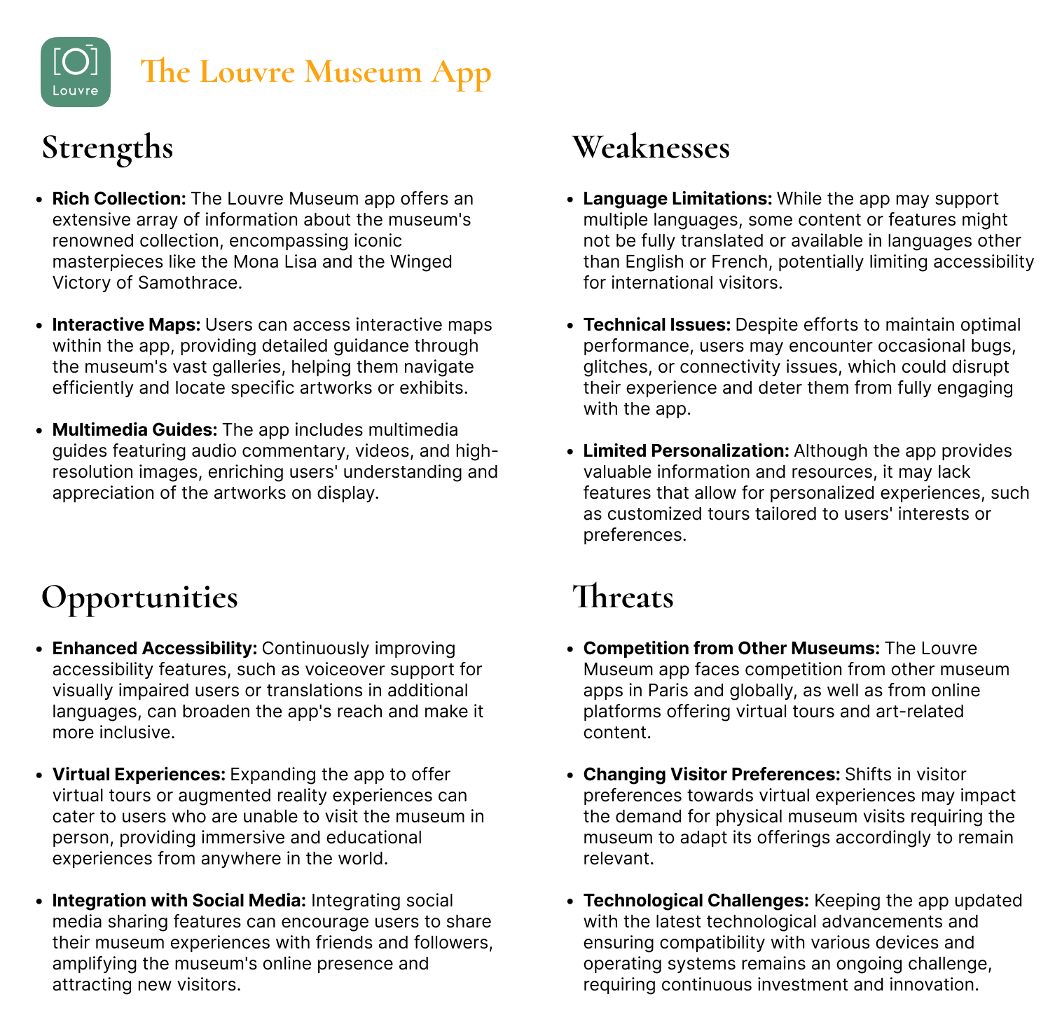 An SWOT analysis of the famous museum apps in Europe and the USA, to get an overview of which features and flows they have.